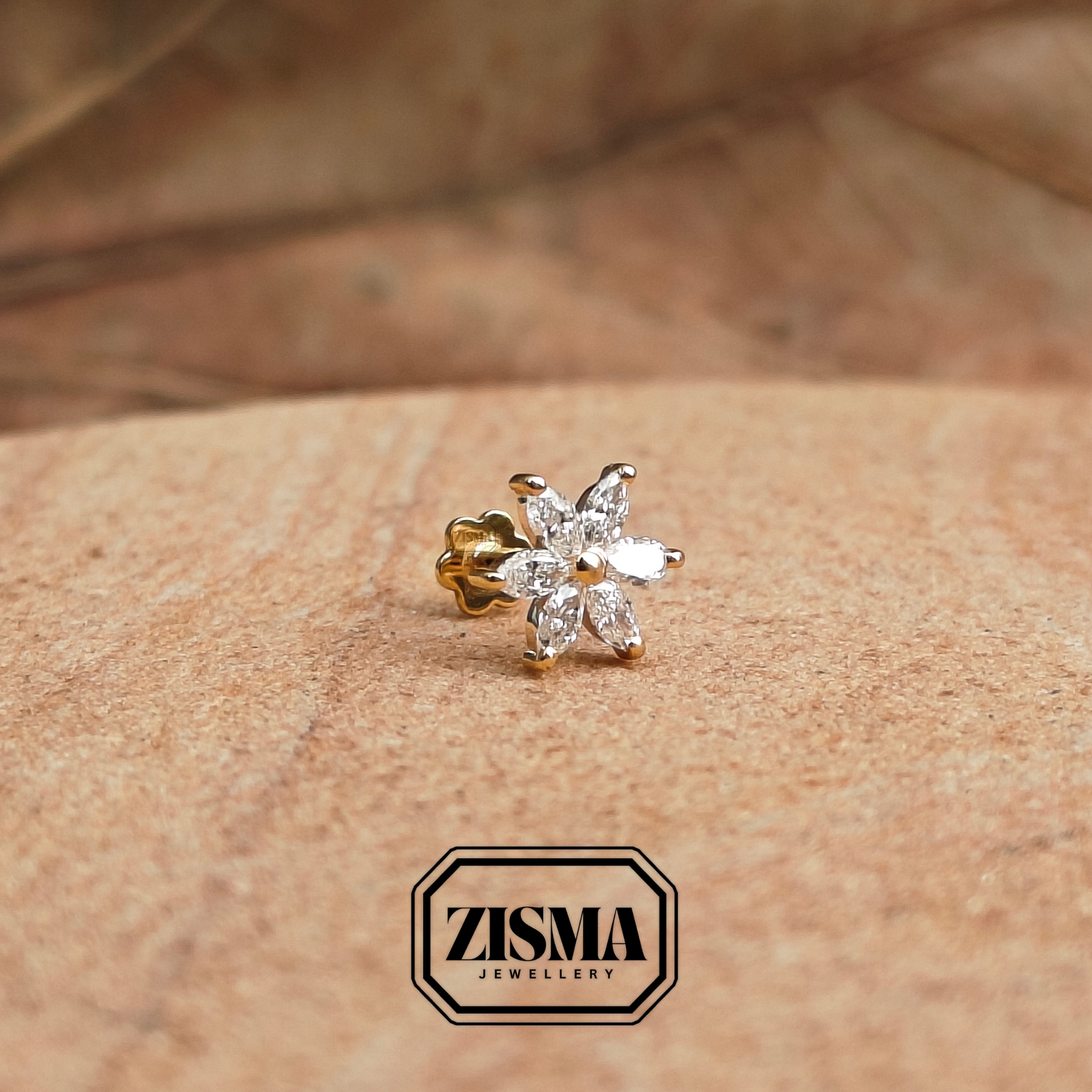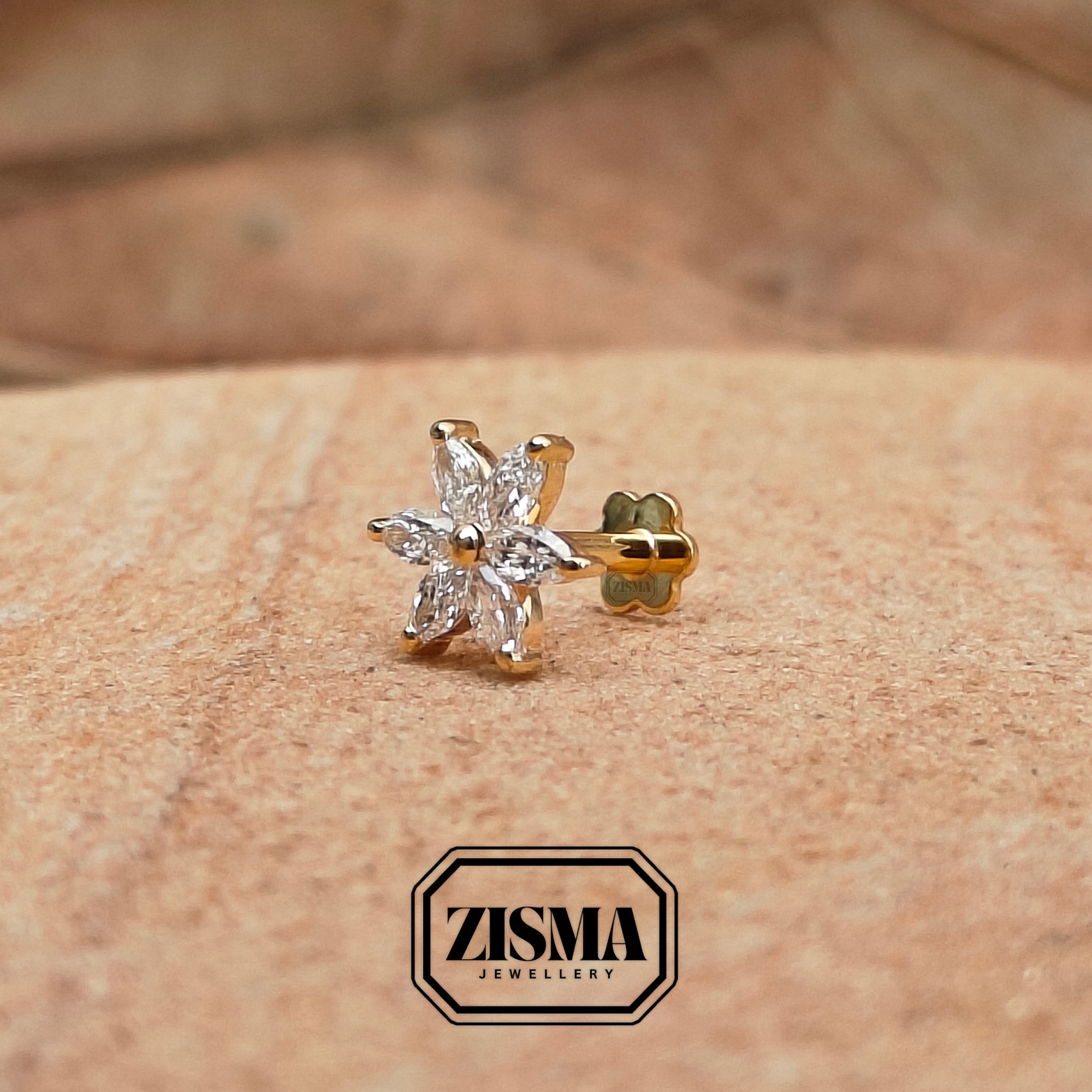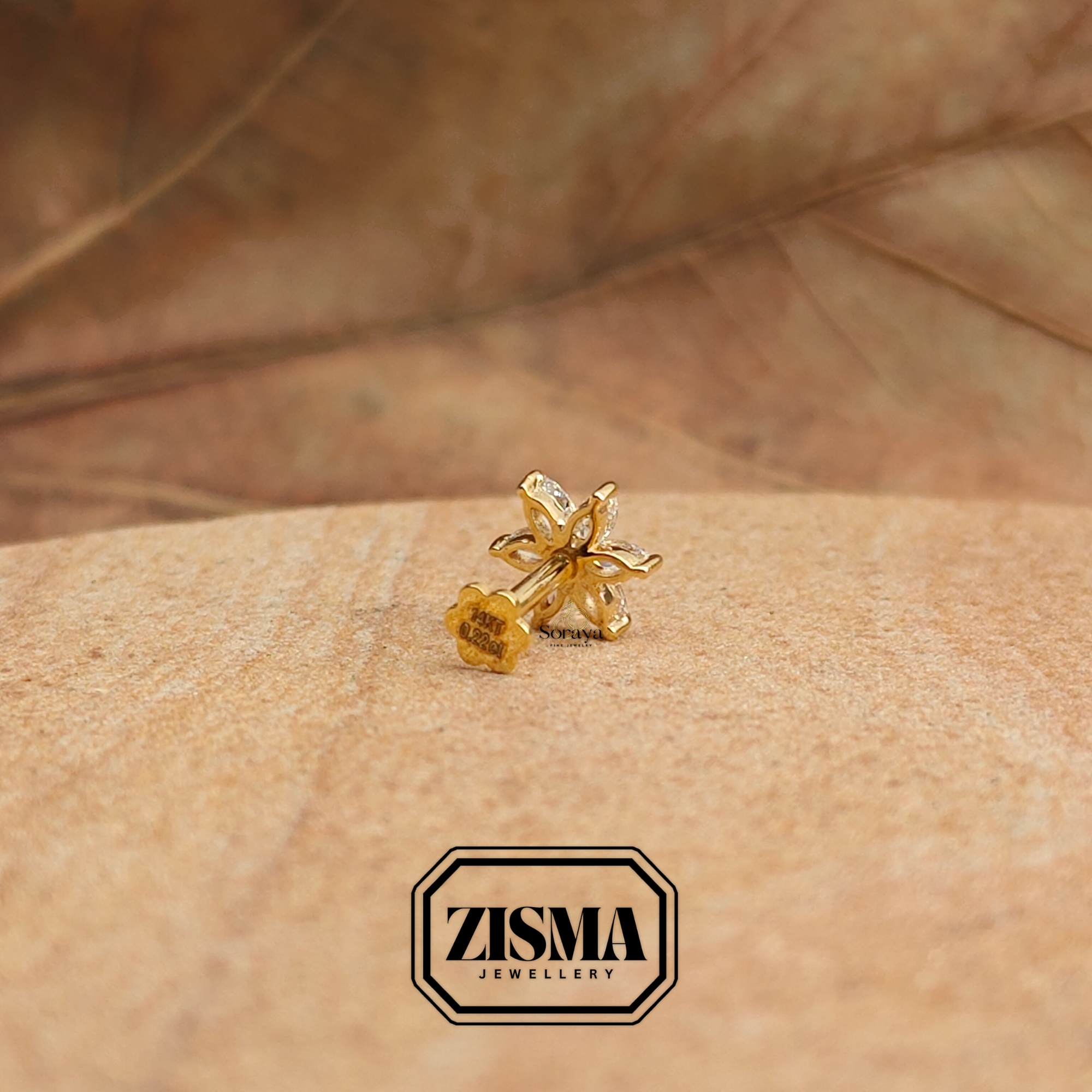 Flower Shaped Marquise Diamond Minimalist Stud 14K Yellow Gold