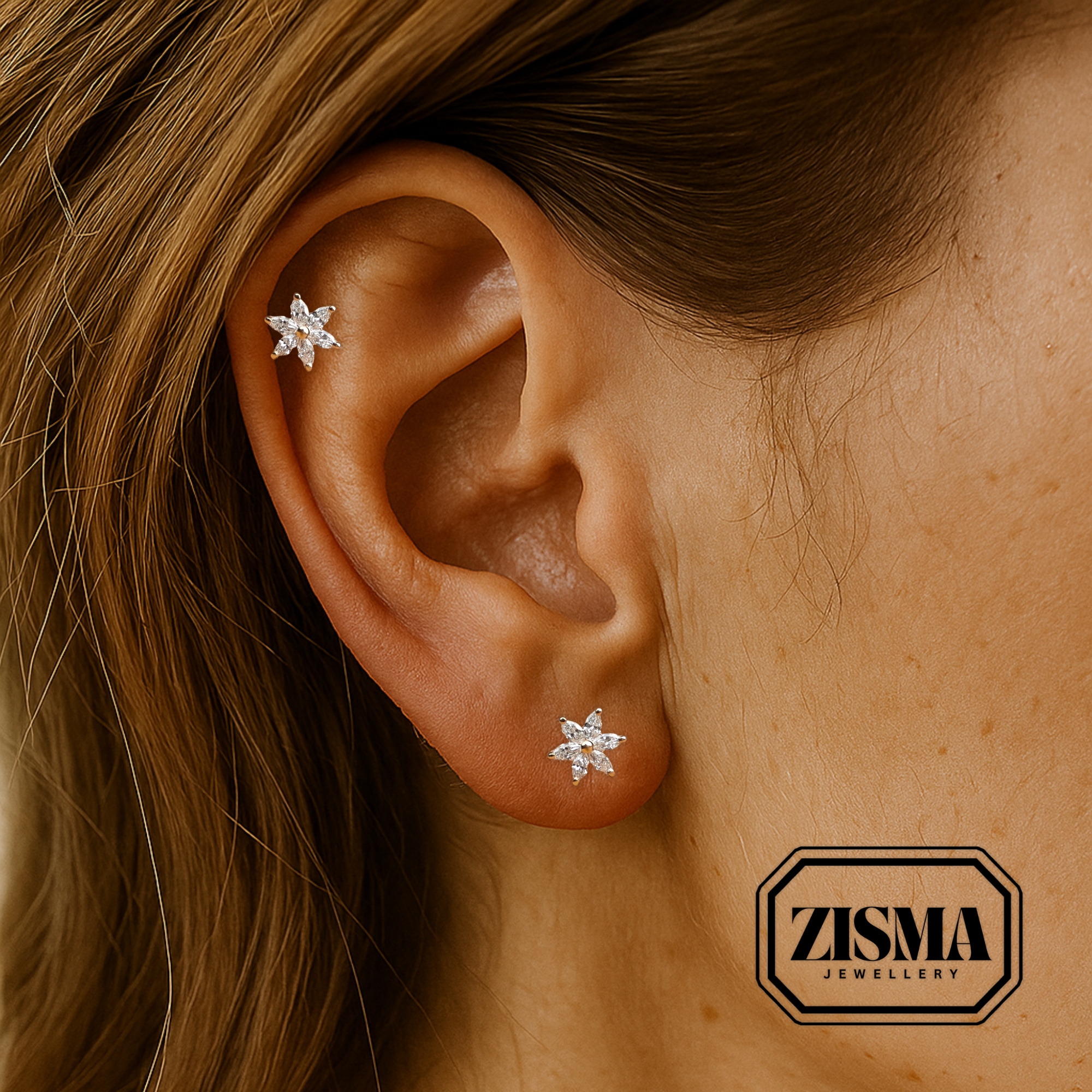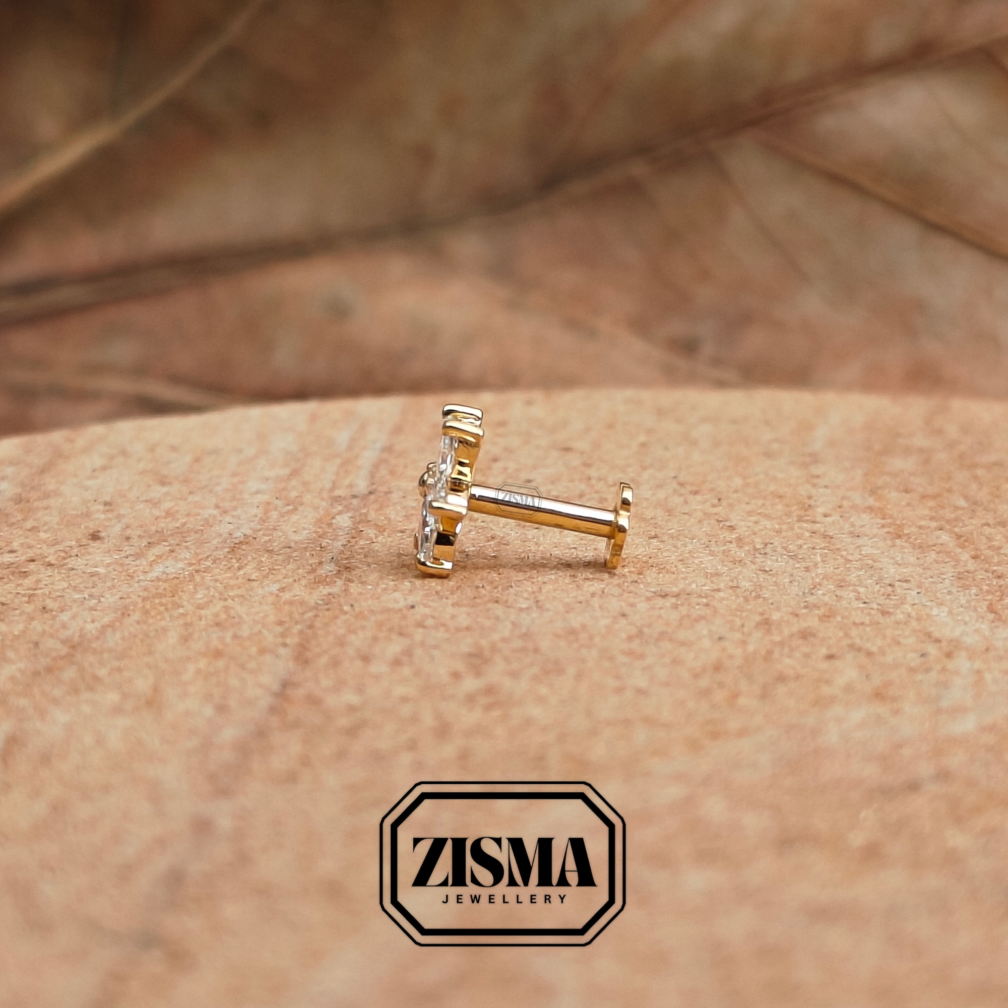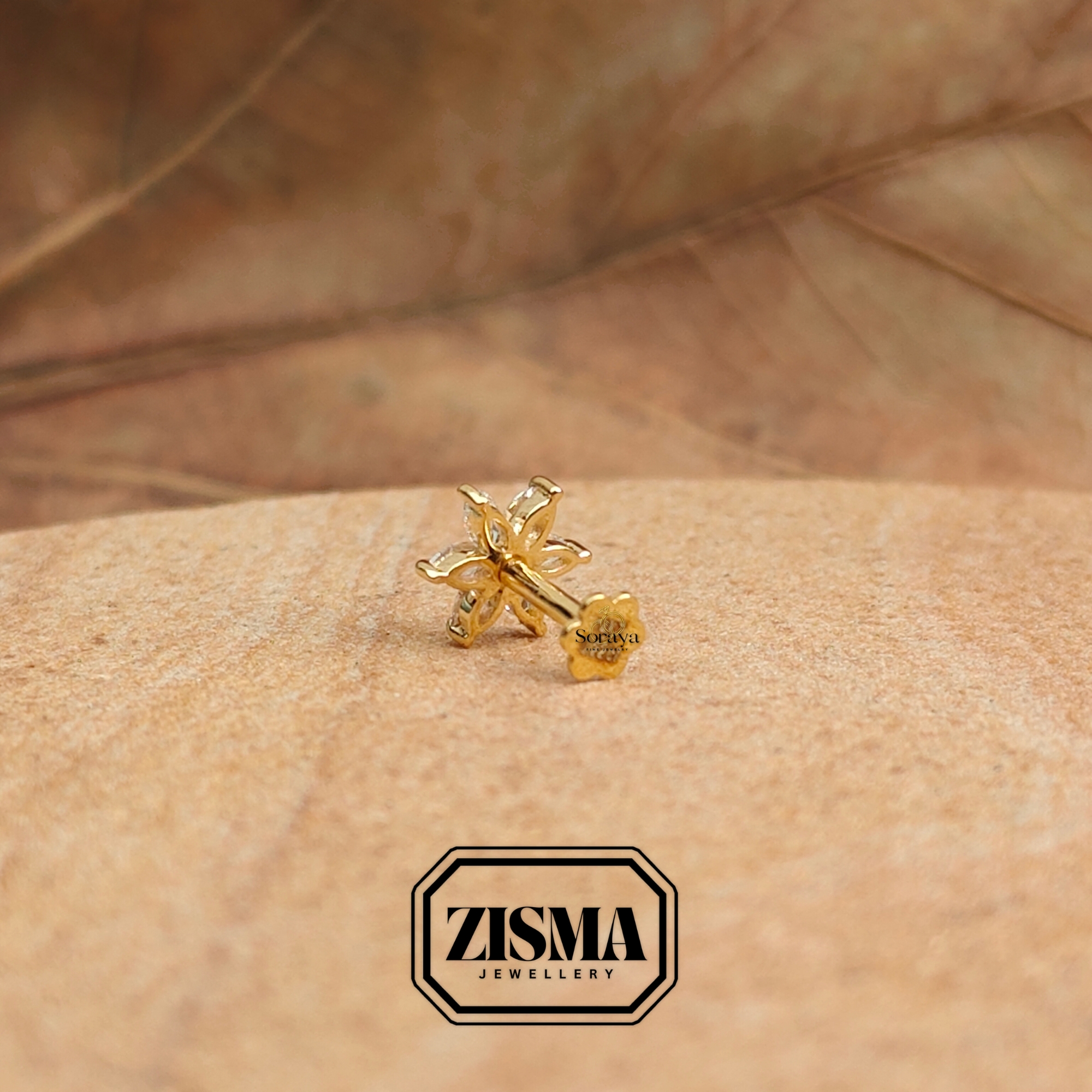 Flower Shaped Marquise Diamond Minimalist Stud 14K Yellow Gold